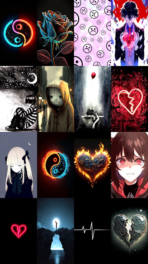 Для мальчиков в депрессии или девочек с разбитым сердцем вы найдете здесь обои «Грусть» и «Депрессия». Выбирайте свои из ярких, черных или темных обоев, трогающих ваше сердце и душу. Взрослые и подростки, после разрыва отношений или любви, скачайте приложение, чтобы облегчить себе жизнь и получить на свой телефон тему грустных цитат.