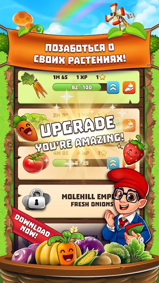 Скачай сейчас приложение Садовая империя 2 и окунись в весёлую дачную атмосферу на телефоне и планшете.