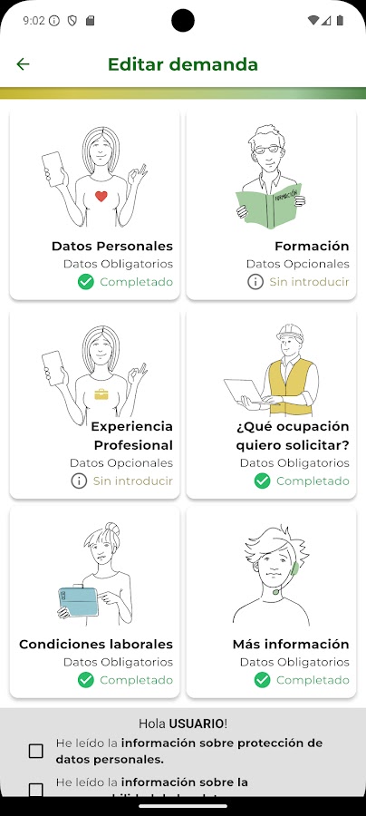 Чтобы получить доступ к приложению, человек должен установить его на свое мобильное устройство и использовать свои учетные данные (пароль и PIN-код) для идентификации. Эти учетные данные предоставляются Андалузской службой занятости как учреждением, ответственным за подтверждение личности человека.