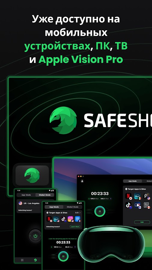SafeShell переворачивает представление о VPN благодаря персонализированному подключению! Эксклюзивный режим «App Mode» позволяет одновременно пользоваться приложениями из разных регионов. Один раз настроили — и пользуетесь навсегда. Откройте для себя свободу в Интернете вместе с SafeShell — на iPhone, iPad, Mac, Apple TV и Apple Vision Pro!