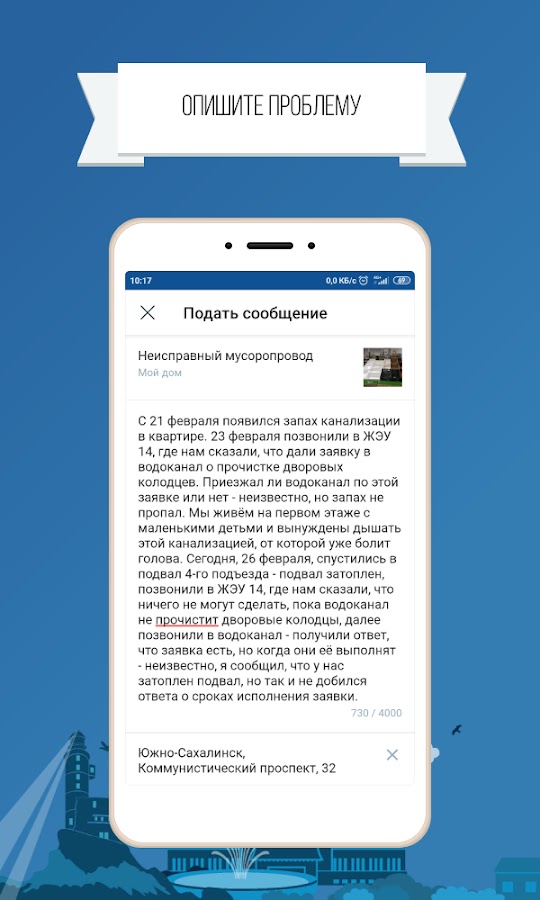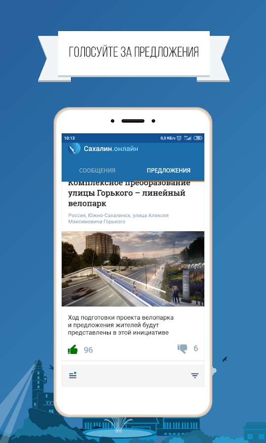 «Сахалин.Онлайн» – проект для тех, кто хочет изменить жизнь региона к лучшему! Направляйте сообщения по общественно значимым проблемам и проблемам в сфере предпринимательской деятельности и получайте ответы еще быстрее с нашим мобильным приложением! Теперь вам не нужен компьютер. Не теряйте времени и заявите о проблеме здесь и сейчас! Не вывозят вовремя мусор? Заметили яму на проезжей части? Не работает светофор? Укажите на проблему, и она не останется без внимания города! Вам всего лишь необходимо: