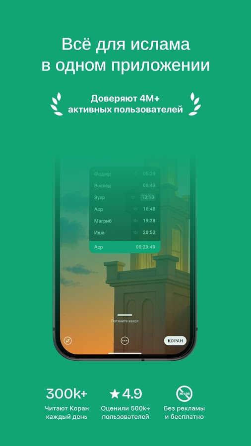 • Иметь доступ к достоверному времени молитв независимо от того, из какой вы страны, города или деревни