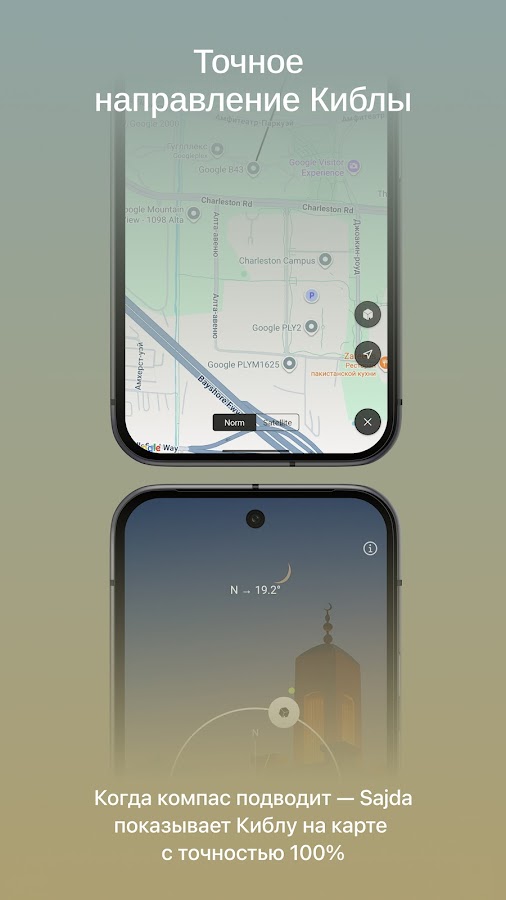 • Вы переехали в другой город или просто не знаете где находится Кибла? Не волнуйтесь, наш анимированный компас поможет вам найти правильное направление