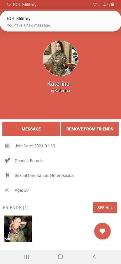 BOL Military — уникальное приложение для знакомств, которое предоставляет услуги знакомств для военных одиноких людей и поклонников во всем мире. В отличие от других сайтов, участники здесь начинают с чего-то общего — любви к военным или военного. Общие интересы помогут сделать свидания проще и эффективнее. BOL Military может помочь вам встретить нужных людей со всего мира или прямо по соседству.