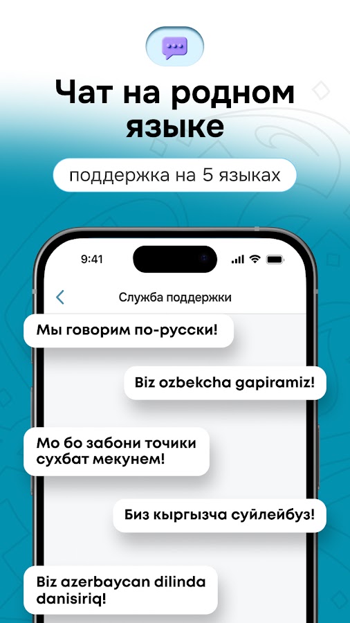 — Чат на родном языке: общайтесь с нашей службой поддержки на родном языке – мы говорим на русском, узбекском, таджикском, кыргызском и азербайджанском.
