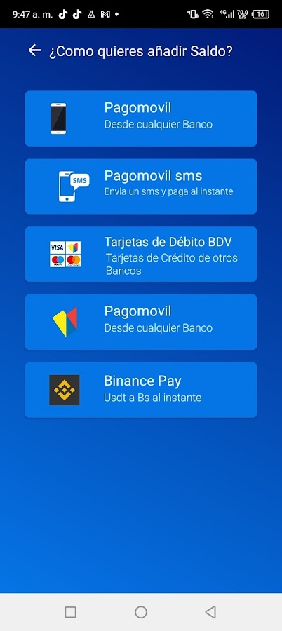 Вы можете вводить боливары простым и удобным способом, используя карту страны или другие способы оплаты.
