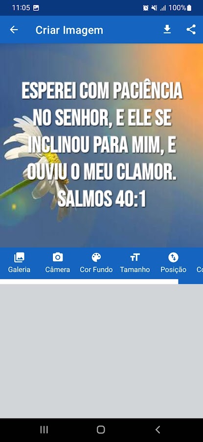 • Позволяет создавать изображения с фразами для WhatsApp с любимыми псалмами.