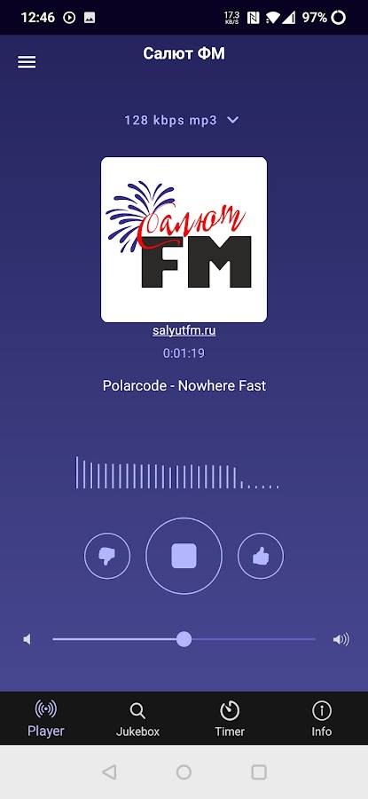 Официальное приложение радиостанции Салют ФМ. Высокое качество звука, стабильная работа при низкой скорости интернета, фоновый режим.