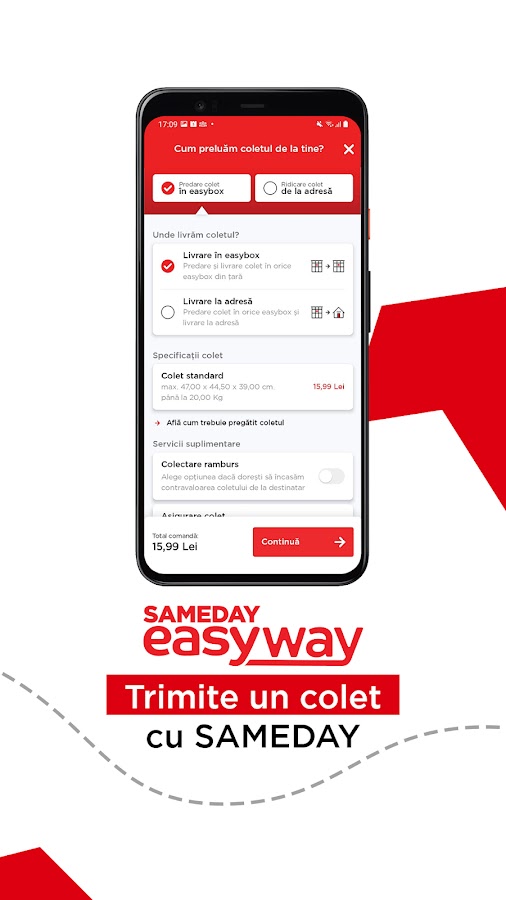 Просто, быстро и легко, как и в случае с easybox, вы можете отправить посылку прямо из приложения SAMEDAY через новую услугу Sameday easyway.