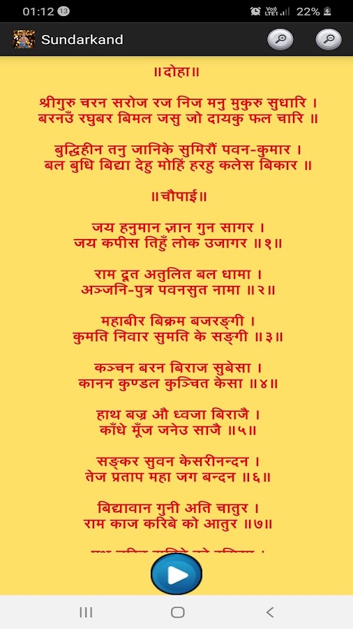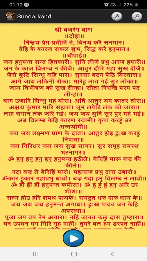 (аудио дорожки и Sundarkand текст с функцией масштабирования)