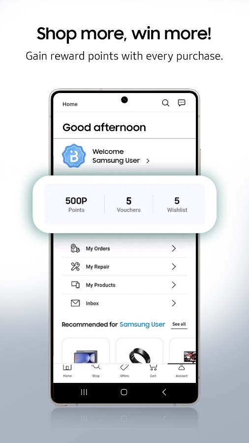 • Получите приветственные бонусы в приложении Samsung Shop.