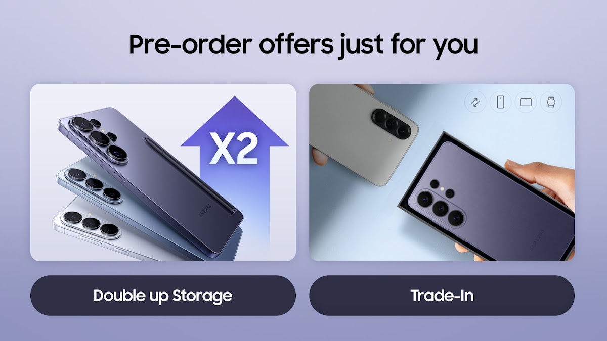 Выберите новое устройство, выберите «Обмен» при оформлении заказа и введите данные своего старого устройства. При покупке устройств серии Galaxy S26 вы можете получить Samsung Credit для Samsung.com или мгновенные скидки на свой новый Galaxy — даже на устройства других марок.