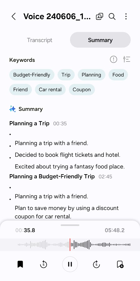 Записывайте высококачественный звук в различных ситуациях быстро и легко с помощью приложения Voice Recordings. Вы также можете эффективно управлять записанными файлами и редактировать их, редактировать транскрибированный текст из аудио или делиться файлами с различными приложениями.