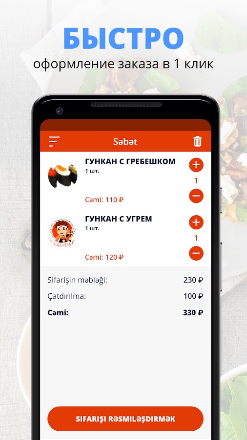 Скачивайте наше приложение, оформляйте заказ и наслаждайтесь любимой едой, где бы Вы ни были! Приятного аппетита!