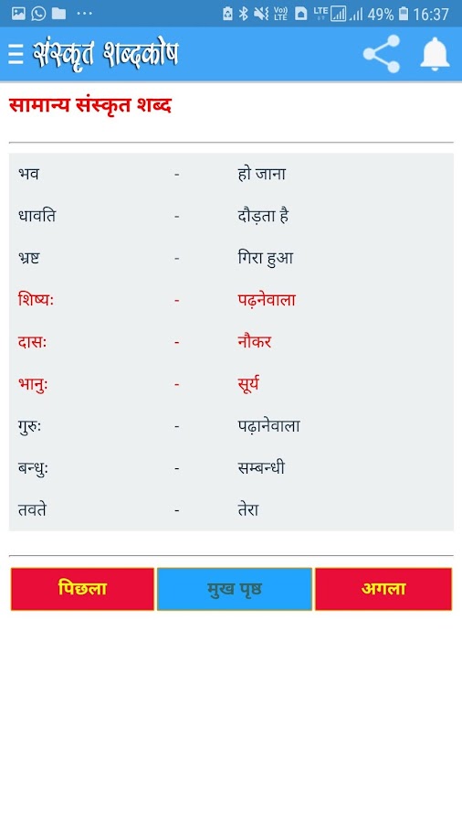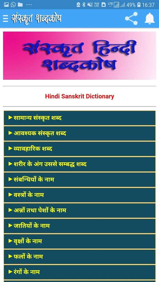 Мобильное приложение Sanskrit Vocabulary Sanskrit Hindi English Dictionary