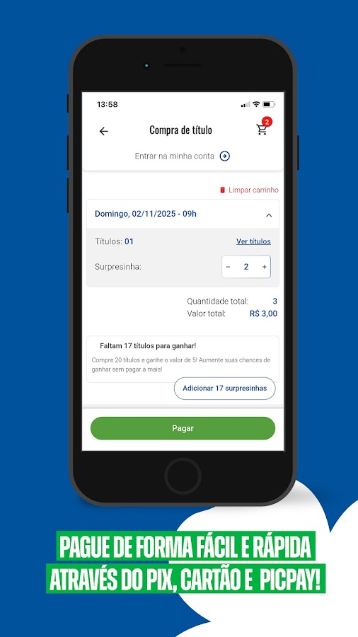 Благодаря современному, быстрому и интуитивно понятному интерфейсу Pix dá Sorte обеспечивает удобство и безопасность каждой покупки. Скачайте приложение прямо сейчас, забронируйте свой билет и узнайте, как легко мечтать!