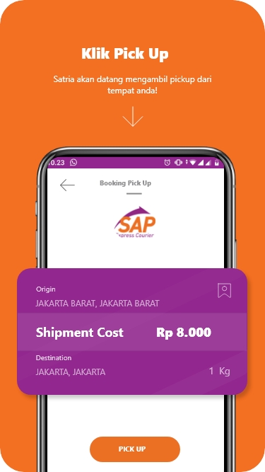 Вам не нужно далеко ходить, чтобы отправить посылки, потому что Сатрия, гордый курьер SAP Express, заберет вашу посылку дома! Вы также можете отслеживать местонахождение вашей посылки с помощью SAP Express Mobile, пока посылка не прибудет в пункт назначения.