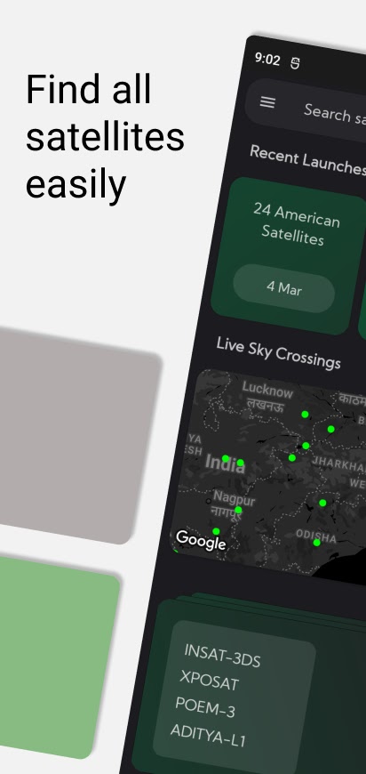 Это комплексное приложение — универсальный магазин всего, что связано со спутником. Изучите обширную базу данных запущенных спутников, включая Международную космическую станцию (МКС), и получите ценную информацию с помощью: