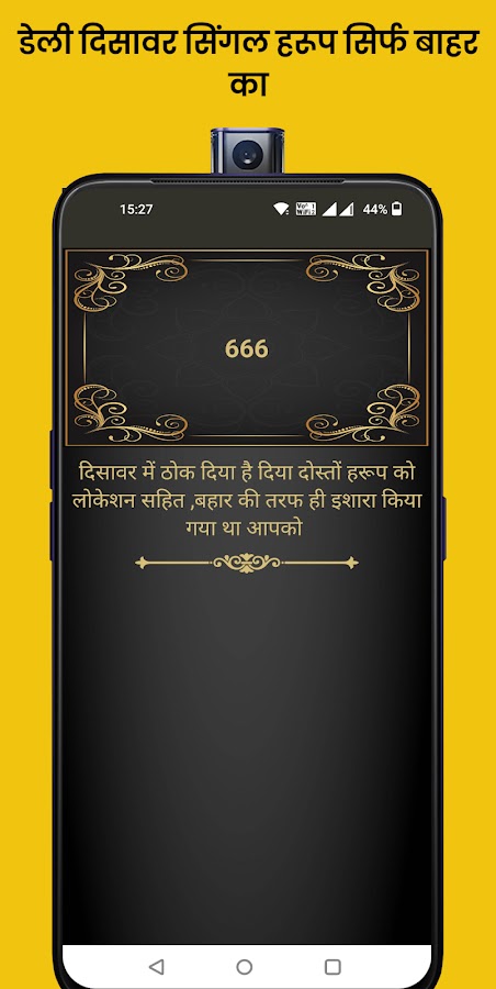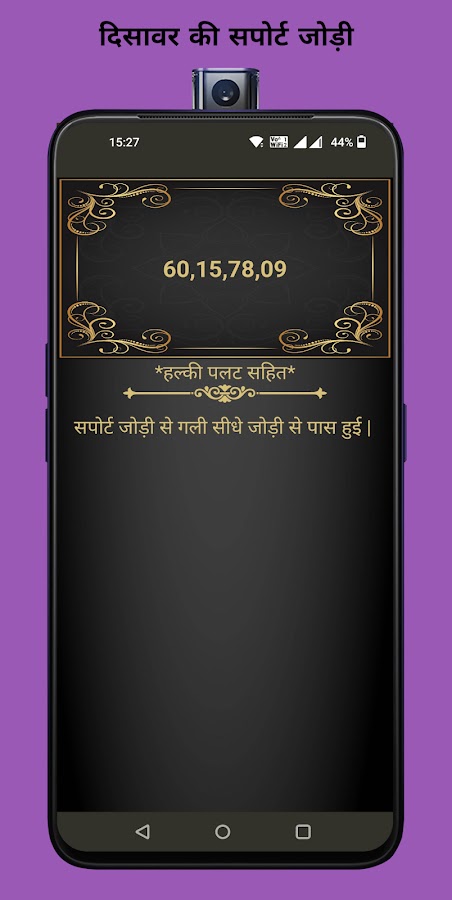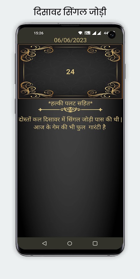 Disawar Satta — самая популярная игра в Индии, которой доверяют многие. Это приложение будет ежедневно предоставлять вам одну пару чисел (джоди) и один харуп (харуп) Disawar King. Здесь вы также получите результаты первой игры Disawar Satta и информацию о том, сколько пар чисел стоит или не стоит играть в Disawar King. Вы получите эту информацию бесплатно в этом приложении.
