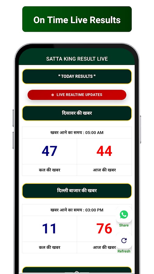 Приложение Satta King Result Live (सट्टा किंग रिजल्ट लाइव) — это информационное приложение, предоставляющее результаты и связанные с ними данные, собранные из общедоступных источников.