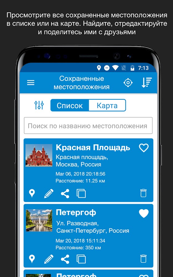 Легкое редактирование сохраненных местоположений или удаление нежелательных.