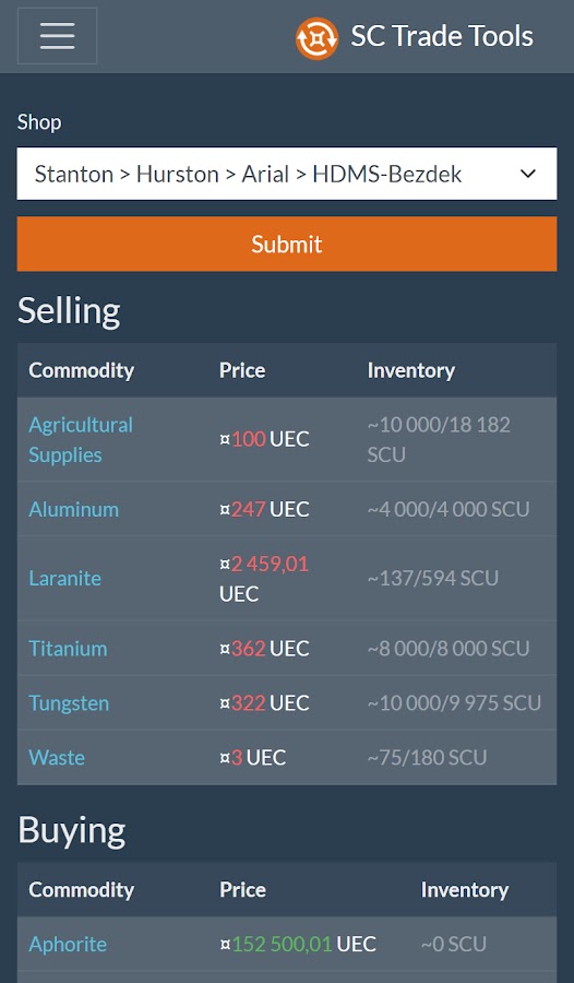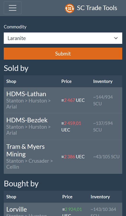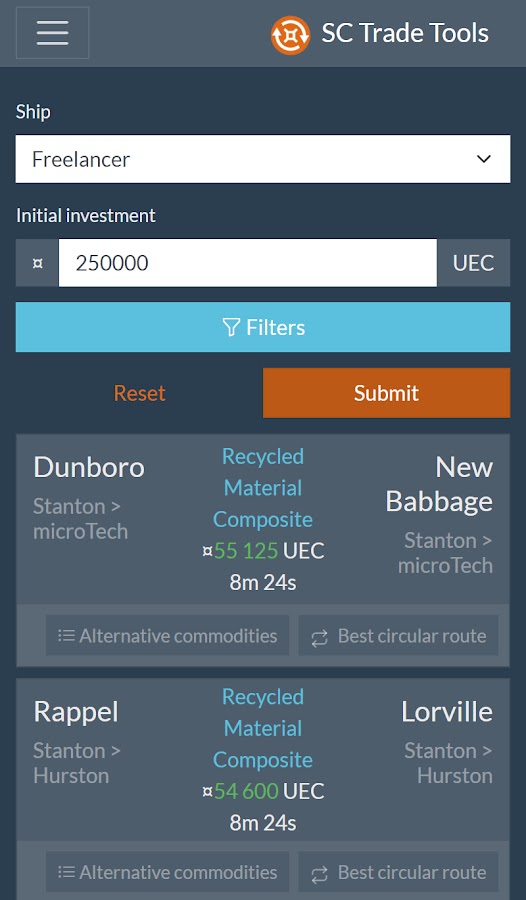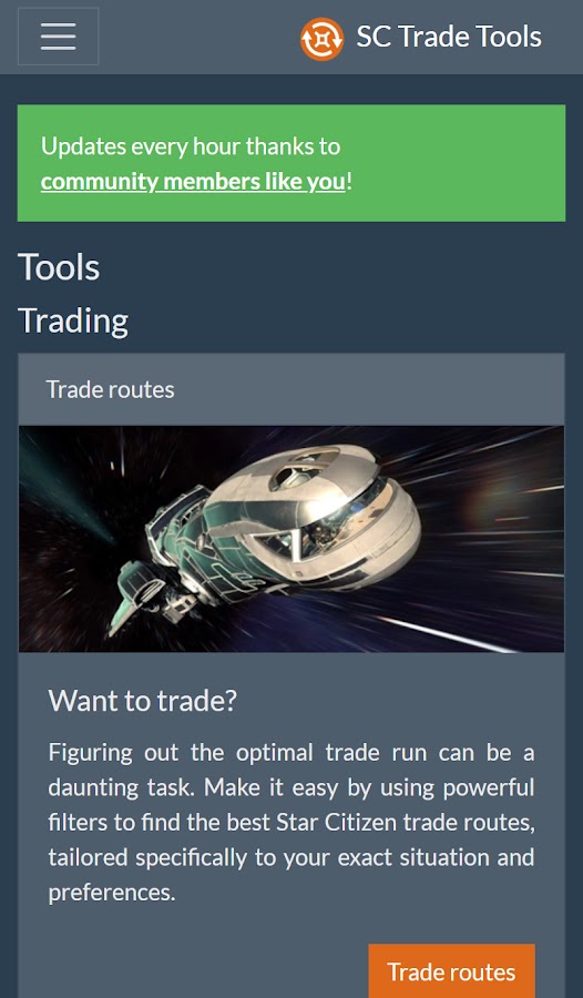SC Trade Tools — это платформа, на которой вы можете найти инструменты для торговли для Star Citizen, адаптированные специально для вас! Благодаря всегда актуальным данным, мощным фильтрам и продуманным алгоритмам оптимизации вы обязательно найдете свой идеальный торговый маршрут!
