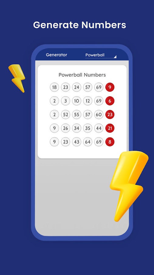 Создайте до 5 линий счастливых комбинаций номеров Powerball или Mega Millions.