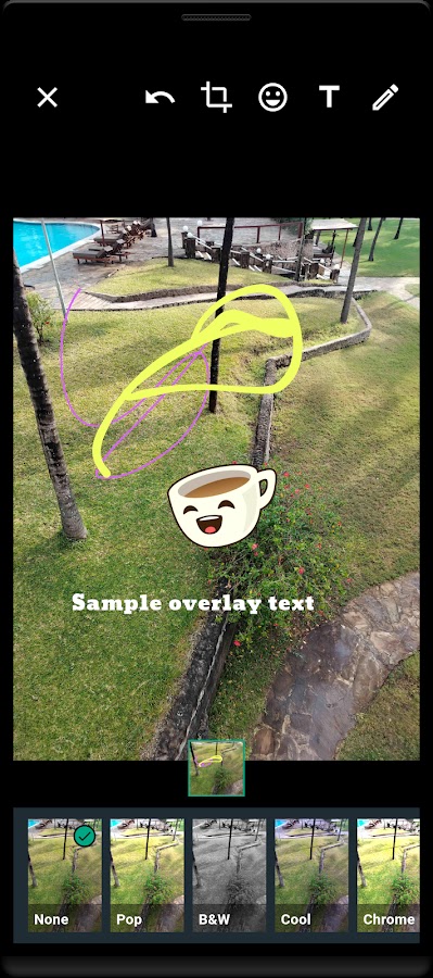 Обрезайте фотографии, добавляйте смайлы, рисуйте или пишите на изображениях, применяйте фильтры и готовьте их к публикации.