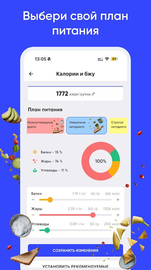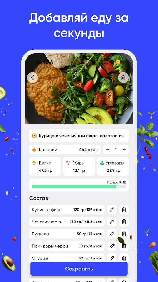 Приложение предлагает подсчет калорий на русском языке, который станет началом вашего пути к здоровью, мотивации и красивой фигуре. Умный калькулятор калорий адаптируется под ваш образ жизни и помогает вести учет питания бесплатно. С нашим приложением расчёт калорий превращается в легкую привычку, при этом ккал калькулятор обеспечивает строгий контроль и точный учет, выбранного дефицита калорий. Выстраивайте свой план питания и подбирайте оптимальный рацион для достижения своих целей.