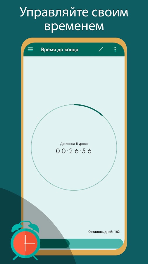 Вместо того чтобы вспоминать расписание звонков, просто зайдите в раздел, показывающий время до конца или начала урока.