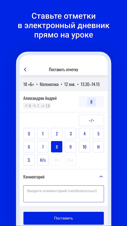 — Легко выставлять отметки прямо во время урока;
