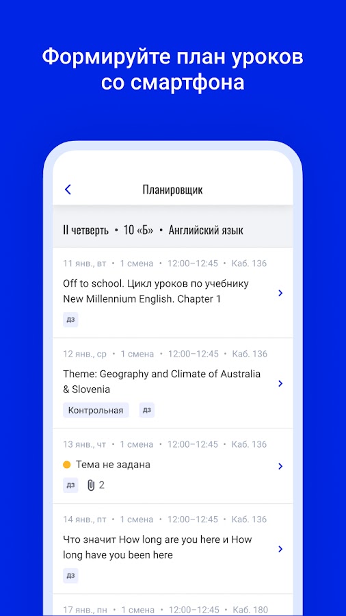 — Формировать план уроков с помощью «Планировщика».