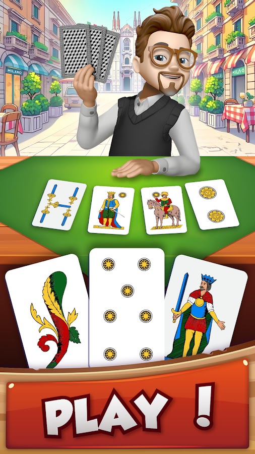 Широкий выбор региональных колод карт: выбирайте из 11 региональных колод карт, включая любимые неаполитанские карты, французские карты, пьяцентинские карты и многие другие. Настройте свой игровой опыт с помощью любимой колоды карт!