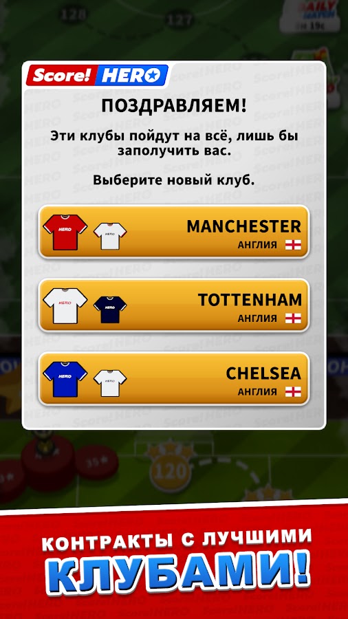 Геймплей Score! Hero разделен на сотни увлекательных уровней, каждый из которых представляет собой определенный сценарий на поле. Вам нужно проявить тактическое мышление, чтобы найти кратчайший путь к воротам в сложных ситуациях. Каждая успешная комбинация приносит награды и позволяет вашему герою подписывать контракты с более престижными клубами.