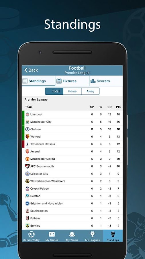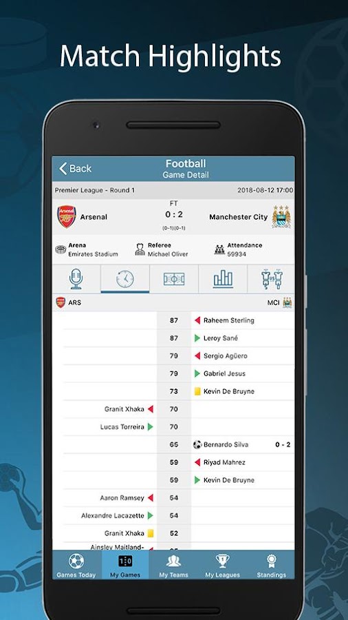 Нажмите на любой матч, чтобы открыть представление сведений о матче, которое включает в себя состав команды, статистику матча, комментарий к матчу, руководство по форме команды, head2head и т. Д. Нажмите на название лиги, чтобы открыть сведения о лиге, которые включают в себя положение в лиге, полное расписание / результат