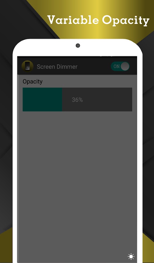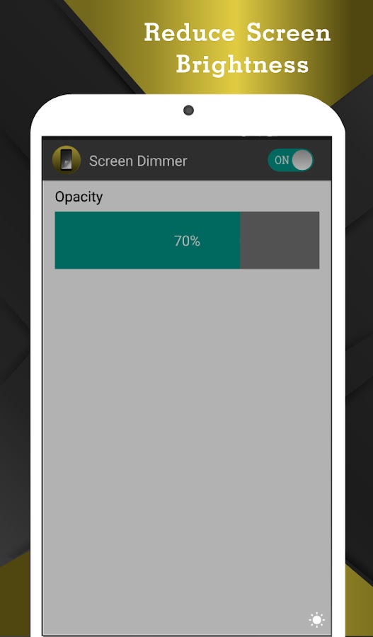 «Диммер экран» приложение позволяет регулировать яркость экрана до любого уровня. Вы можете регулировать яркость от 0% до 100% с этим приложением.