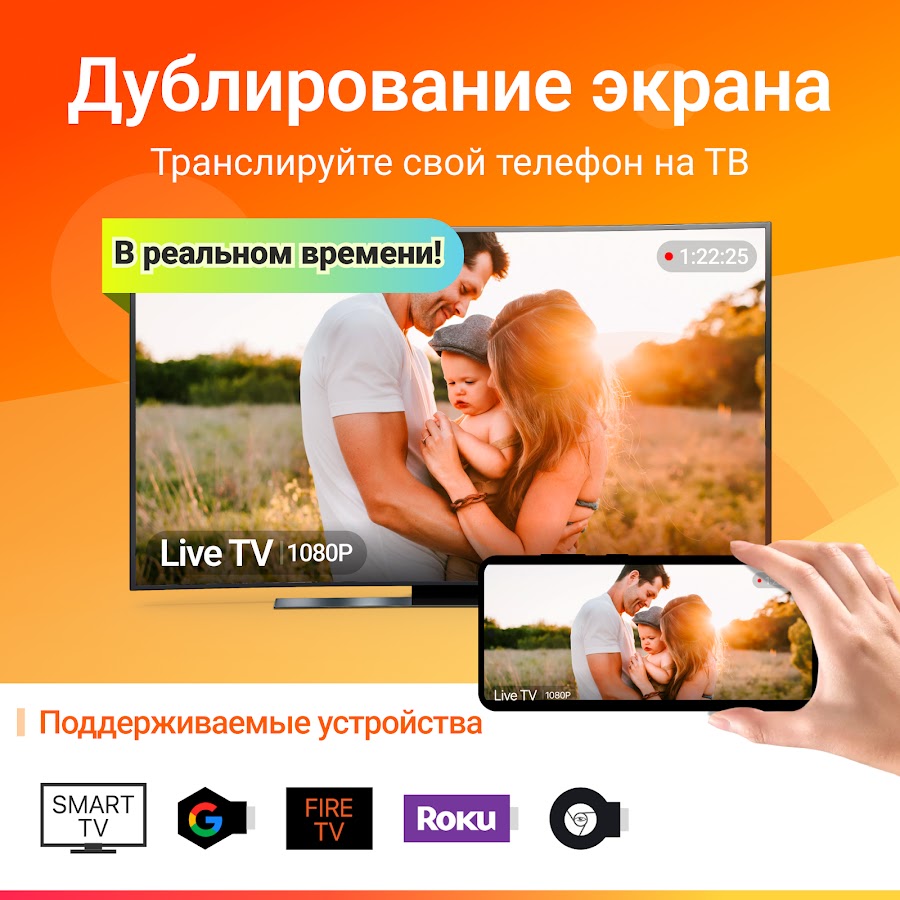 ✦ Стабильная трансляция экрана телефона на большом ТВ-экране.