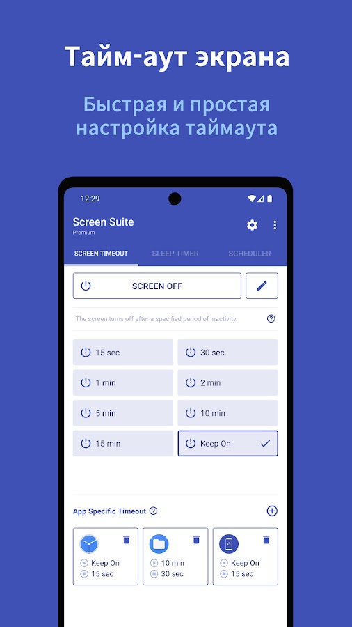 Описание Screen Suite: ScreenOffTimeout