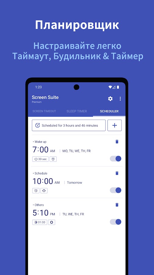 ● Запланированные задачи и будильники (до 3)
