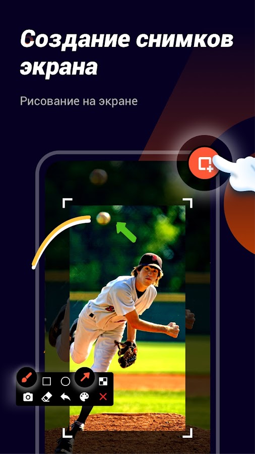 — Удобный захват экрана одним касанием и возможность быстро поделиться записью.
