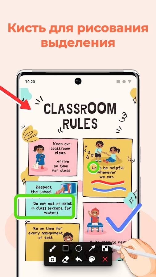 ✅ Инструмент «Кисть»: рисуйте и пишите прямо на экране, чтобы выделять важные детали.
