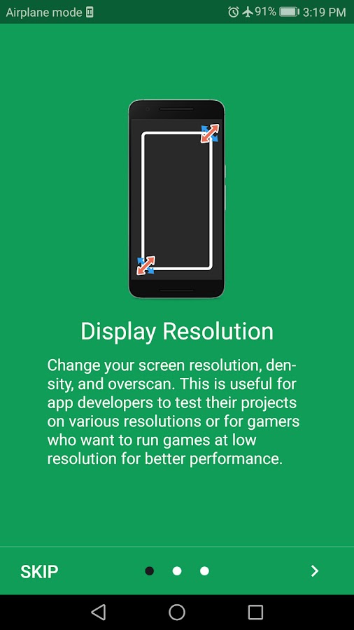 Отличный и надежный инструмент для изменения разрешения экрана Android, а также для настройки плотности экрана. Разрешение Changer переключает дисплей смартфона / планшета между некоторыми предварительно заданными разрешениями экрана, или вы можете установить свой собственный размер экрана.