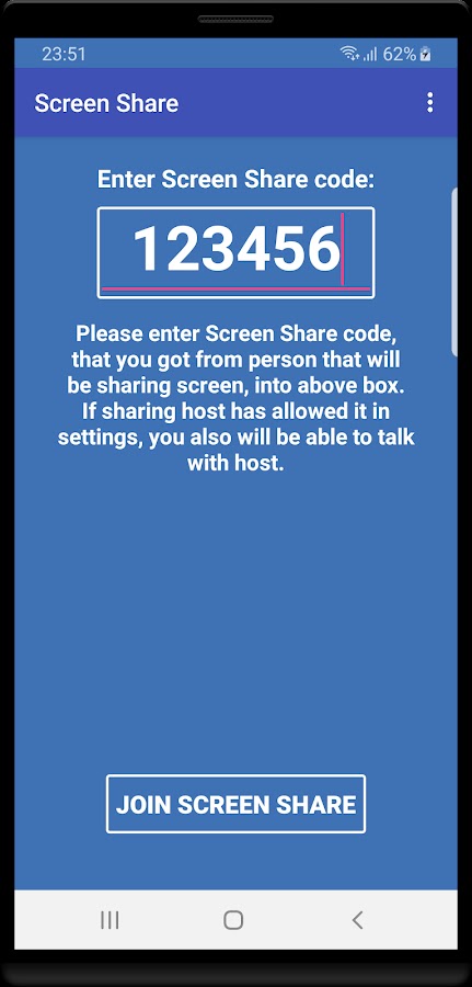 Перед тем, как начать фактическое совместное использование экрана, хост видит 6-значный код, который должен быть передан участникам (вы можете использовать некоторые известные приложения для обмена сообщениями или, если участник находится рядом с вами, просто сообщите код). Как только хост начинает общий доступ и присоединяющийся вводит код, между двумя устройствами будет установлено соединение и начнется совместное использование мультимедиа.