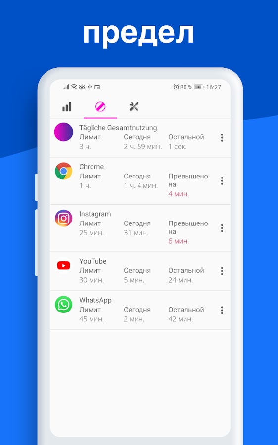 ⏰ Получайте напоминания, когда вы превысите установленные ограничения на использование приложений.