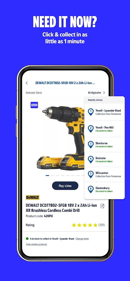 • Оставайтесь на объекте – доставка всего за 20 минут с Screwfix Sprint – эксклюзивно в приложении – доступно в некоторых торговых точках Screwfix. Полные условия и положения см. на сайте screwfix.com/sprint