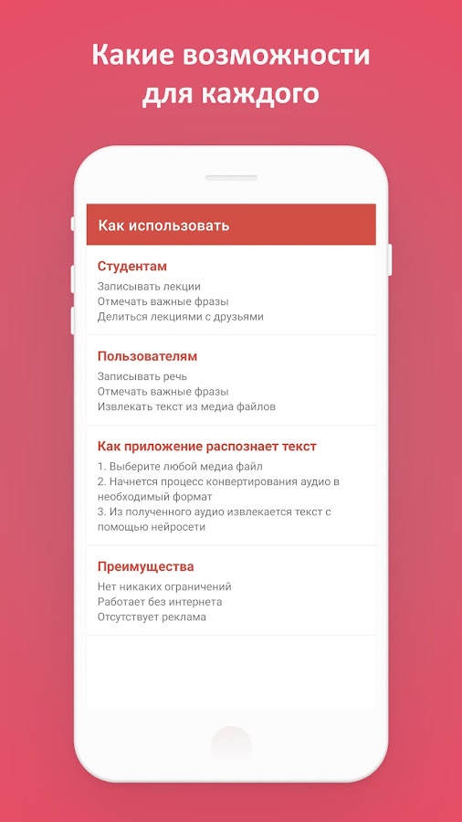 Вы можете записывать свои мысли или лекции без ограничений в офлайн режиме. Извлекать текст из музыки или видео. Редактировать текст длительным нажатием. Добавлять закладки, отмечая их разным цветом. Использовать поиск для того, чтобы найти все необходимое.