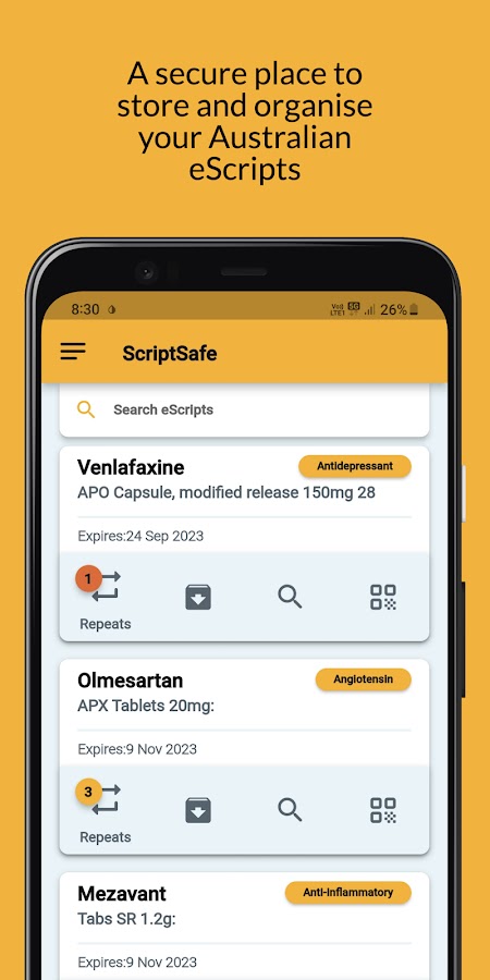 ScriptSafe — это мобильное приложение для управления электронными рецептами (eScripts), предоставляющее безопасное и удобное решение для организации всех ваших eScripts в одном месте. Попрощайтесь с неуместными или потерянными eScript среди бесчисленных текстовых сообщений, электронных писем и другого цифрового контента.