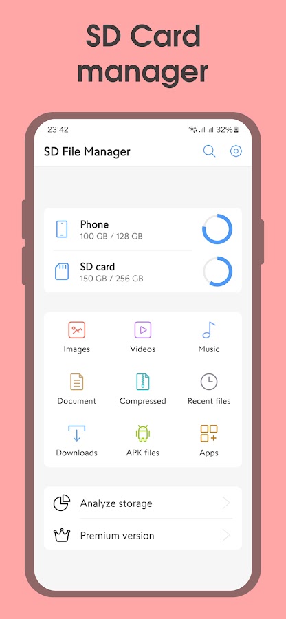 SD Card & File Manager — это полный инструмент для управления картами памяти и внутренней памятью устройства. Он позволяет просматривать SD-карту, читать все файлы на устройстве, искать файлы, создавать папки, создавать файлы, копировать файлы, перемещать файлы, переименовывать файлы, просматривать информацию о файлах, делиться или удалять файлы.