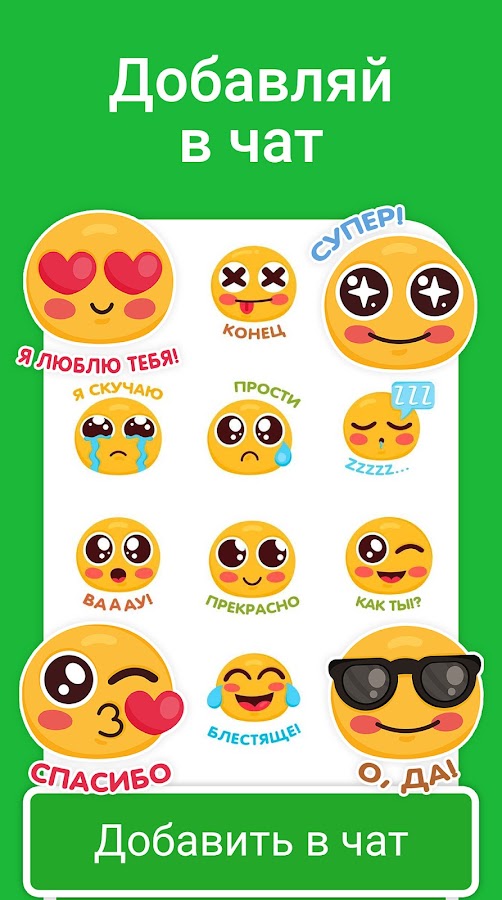 Вы можете добавить любой смайлик, какой захотите. Любовные смайлики 🥰, смалики с улыбкой 😄, сердечки ❤️ и другие. Можно также добавить стикеру любой другой понравившийся смайлик.