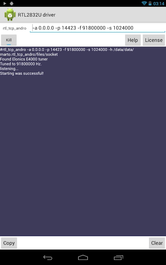 Это приложение выпущено под GPL2 + как производная от rtl_tcp и libhackrf. Исходный код можно найти по адресу https://github.com/martinmarinov/rtl_tcp_andro-